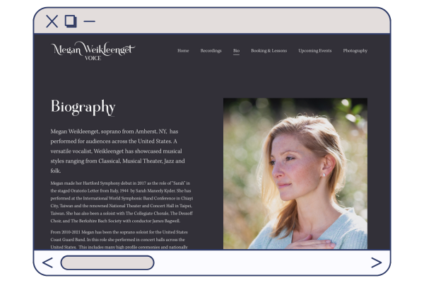 Megan, a gifted soprano and vocal coach, needed a website that could hold both her performance career and her private teaching practice. Our collaboration focused on creating a clean, elegant digital hub that reflects the depth and professionalism of her work. Together, we: